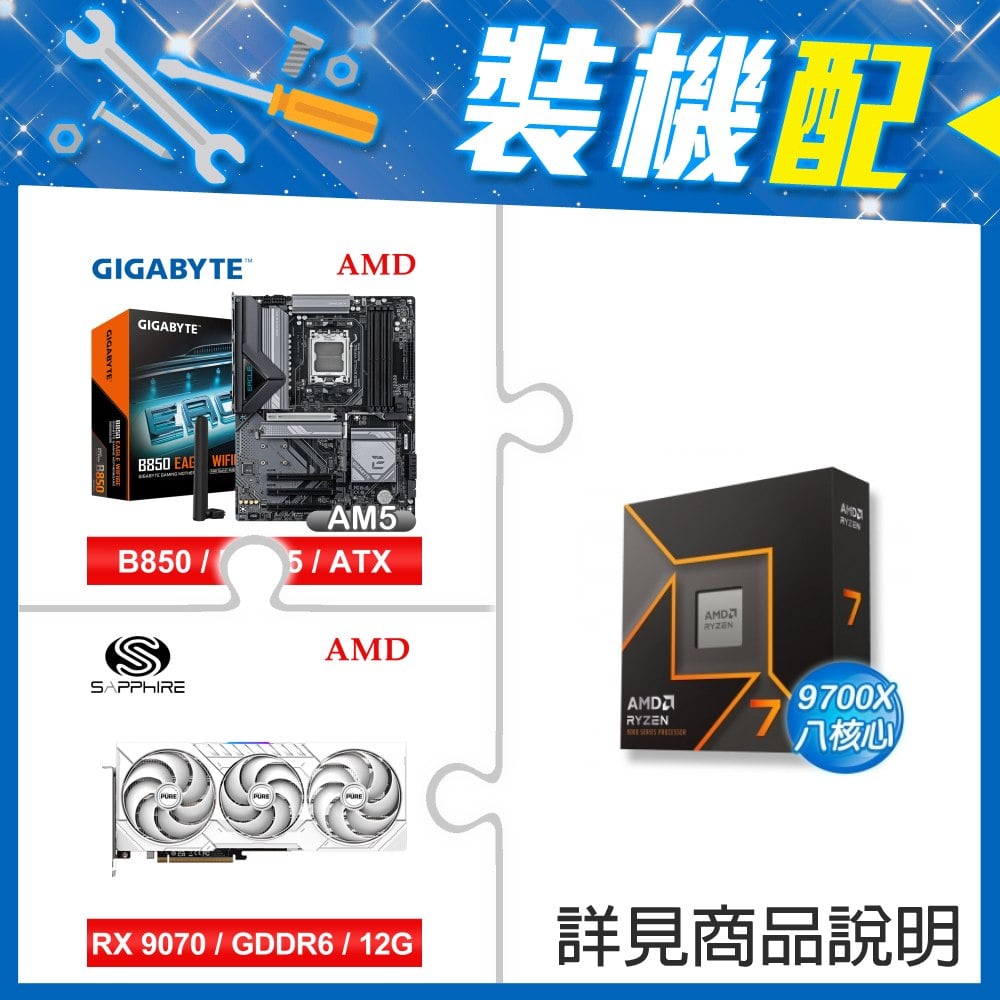 ☆裝機配★ AMD R7 9700X+技嘉 B850 EAGLE WIFI6E ATX主機板+藍寶石 PURE 極地 RX 9070 GRE GAMING OC 12GB 顯示卡