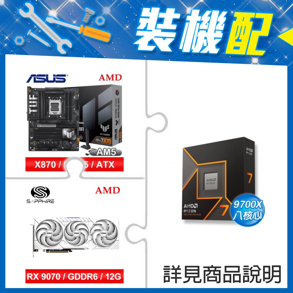 ☆裝機配★ AMD R7 9700X+華碩 TUF GAMING X870-PLUS WIFI ATX主機板+藍寶石 PURE 極地 RX 9070 GRE GAMING OC 12GB 顯示卡