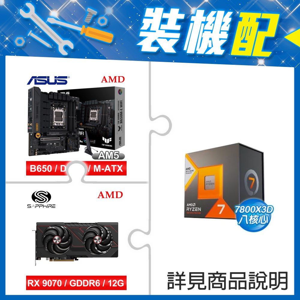 ☆裝機配★ AMD R7 7800X3D+華碩 TUF GAMING B650M-E WIFI D5 MATX主機板+藍寶石 PULSE 脈動 RX 9070 GRE GAMING 12GB 顯示卡