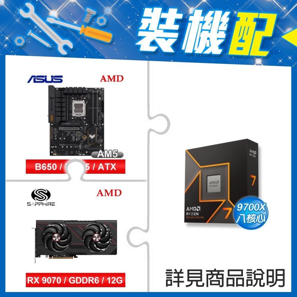 ☆裝機配★ AMD R7 9700X+華碩 TUF GAMING B850-PLUS WIFI ATX主機板+藍寶石 PURE 極地 RX 9070 GRE GAMING OC 12GB 顯示卡