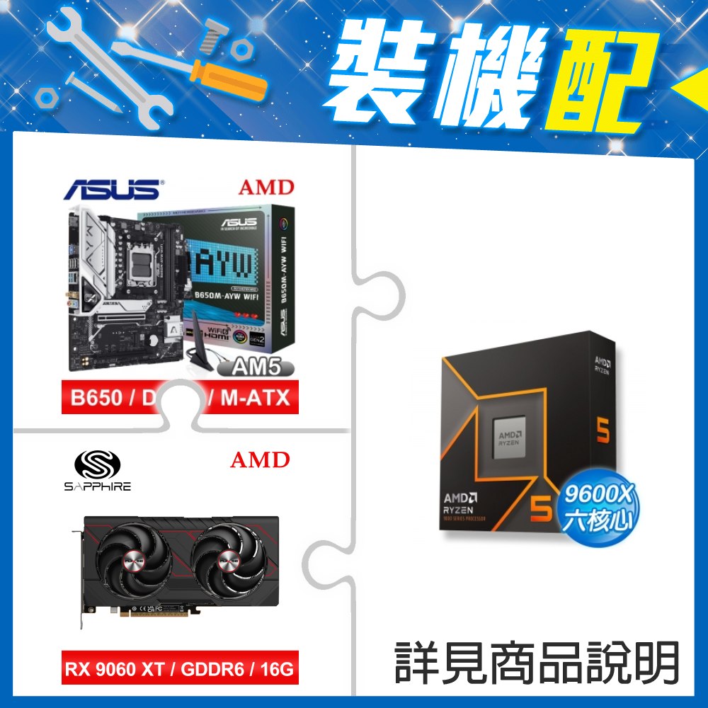 ☆裝機配★ AMD R5 9600X+華碩 B650M-AYW WIFI MATX主機板+藍寶石 PULSE 脈動 RX 9060 XT GAMING OC 16GB 顯示卡