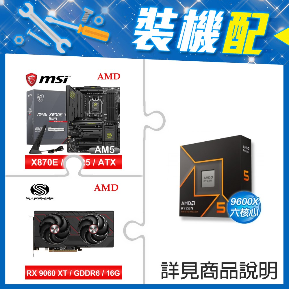 ☆裝機配★ AMD R5 9600X+微星 MAG X870E TOMAHAWK WIFI ATX主機板+藍寶石 PULSE 脈動 RX 9060 XT GAMING OC 16GB 顯示卡