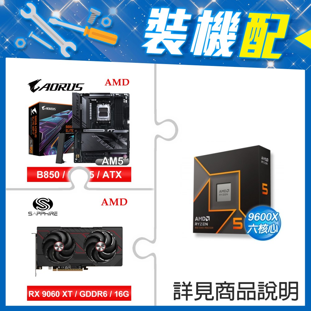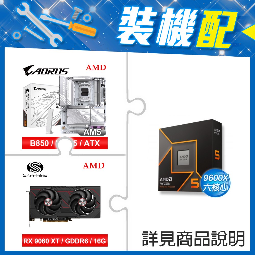☆裝機配★ AMD R5 9600X+技嘉 B850 AORUS ELITE WIFI7 ATX主機板+藍寶石 PULSE 脈動 RX 9060 XT GAMING OC 16GB 顯示卡