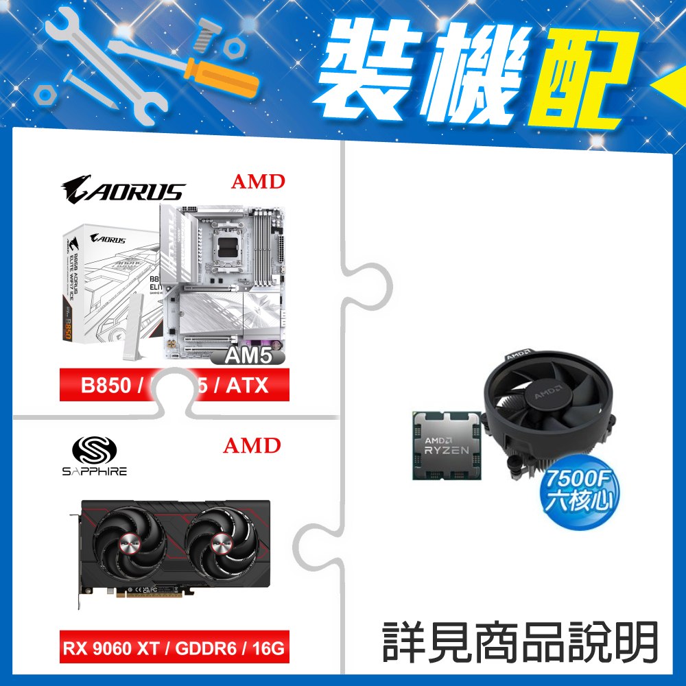 ☆裝機配★ AMD R5 7500F+技嘉 B850 AORUS ELITE WIFI7 ICE ATX主機板+藍寶石 PULSE 脈動 RX 9060 XT GAMING OC 16GB 顯示卡