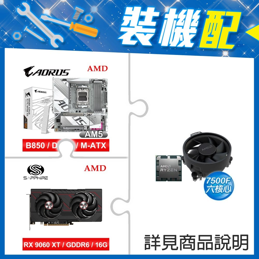 ☆裝機配★ AMD R5 7500F+技嘉 B850M AORUS ELITE WIFI6E ICE M-ATX主機板+藍寶石 PULSE 脈動 RX 9060 XT GAMING OC 16GB 顯示卡