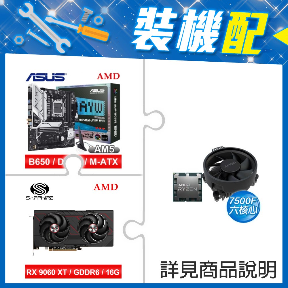 ☆裝機配★ AMD R5 7500F+華碩 B650M-AYW WIFI MATX主機板+藍寶石 PULSE 脈動 RX 9060 XT GAMING OC 16GB 顯示卡