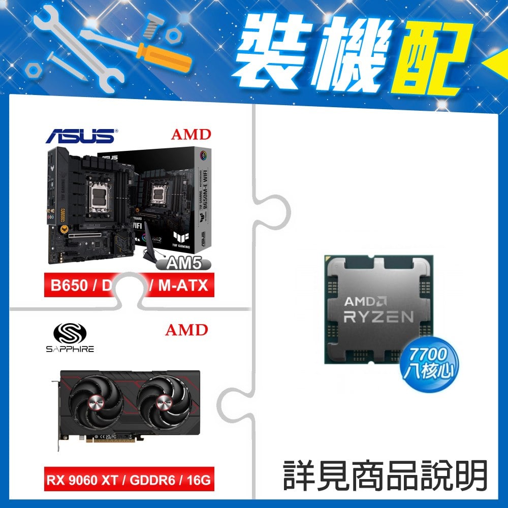 ☆裝機配★ AMD R7 7700 MPK+華碩 TUF GAMING B650M-E WIFI D5 MATX主機板+藍寶石 PULSE 脈動 RX 9060 XT GAMING OC 16GB 顯示卡