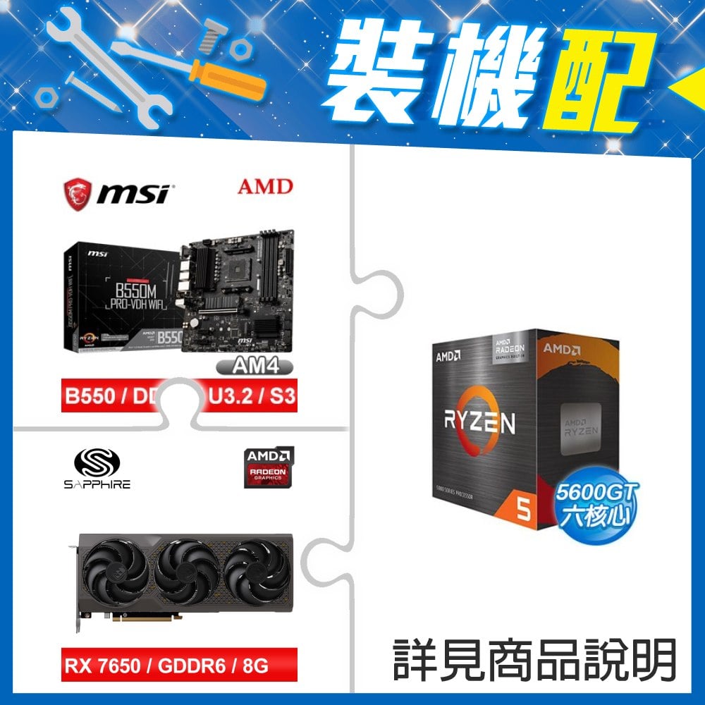 ☆裝機配★ AMD R5 5600GT+微星 B550M PRO-VDH WIFI M-ATX主機板+藍寶石 PULSE 白金版 RX 7650 GRE GAMING 8GB 顯示卡