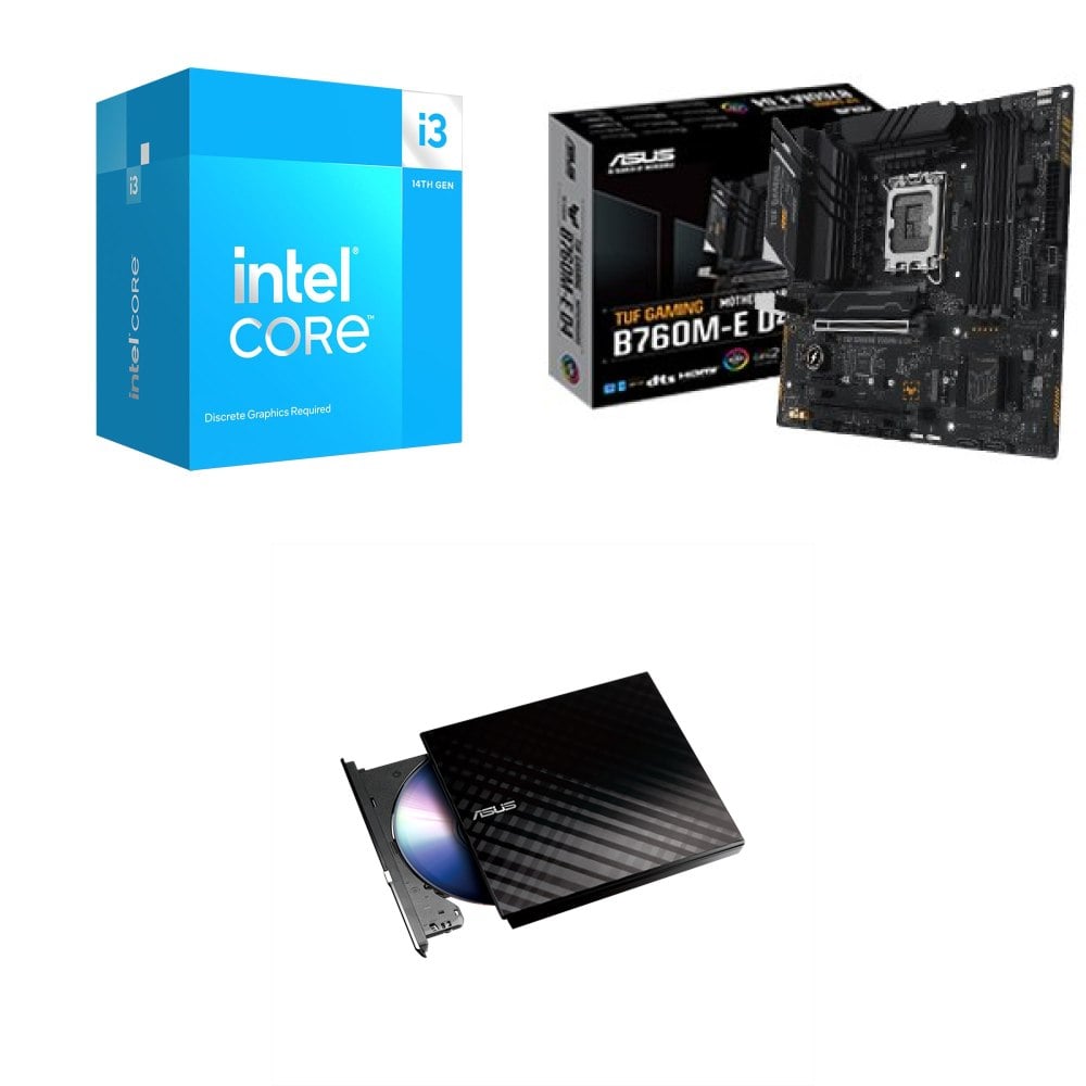 ☆裝機配★ i3-14100F+華碩 TUF GAMING B760M-E D4 M-ATX主機板+華碩 SDRW-08D2S-U 外接式燒錄機《黑》