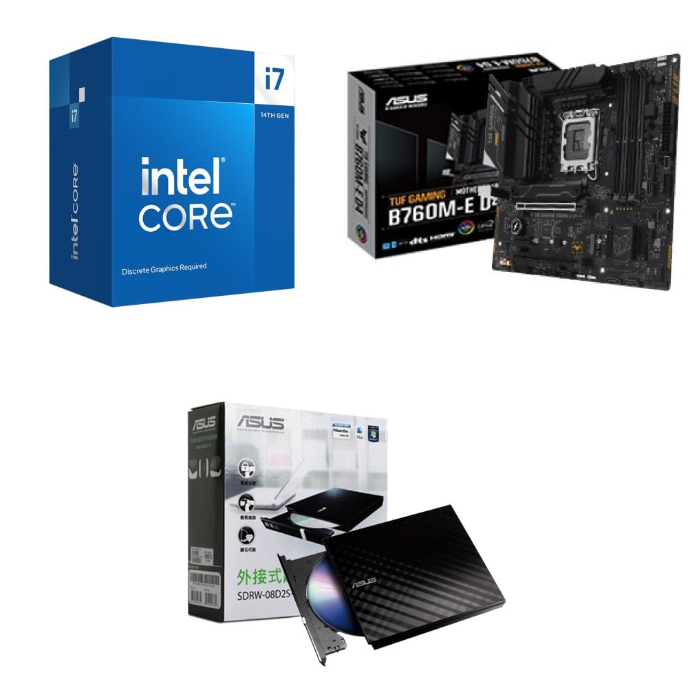 ☆裝機配★ i7-14700F+華碩 TUF GAMING B760M-E D4 M-ATX主機板+華碩 SDRW-08D2S-U 外接式燒錄機《黑》
