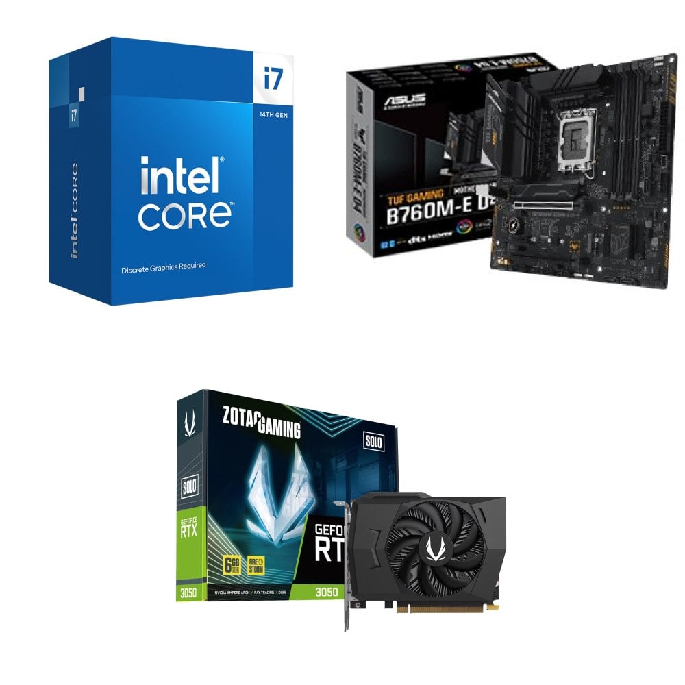 ☆裝機配★ i7-14700F+華碩 TUF GAMING B760M-PLUS WIFI II D5 MATX主機板+ZOTAC RTX3050 6G GDDR6 Solo 顯示卡