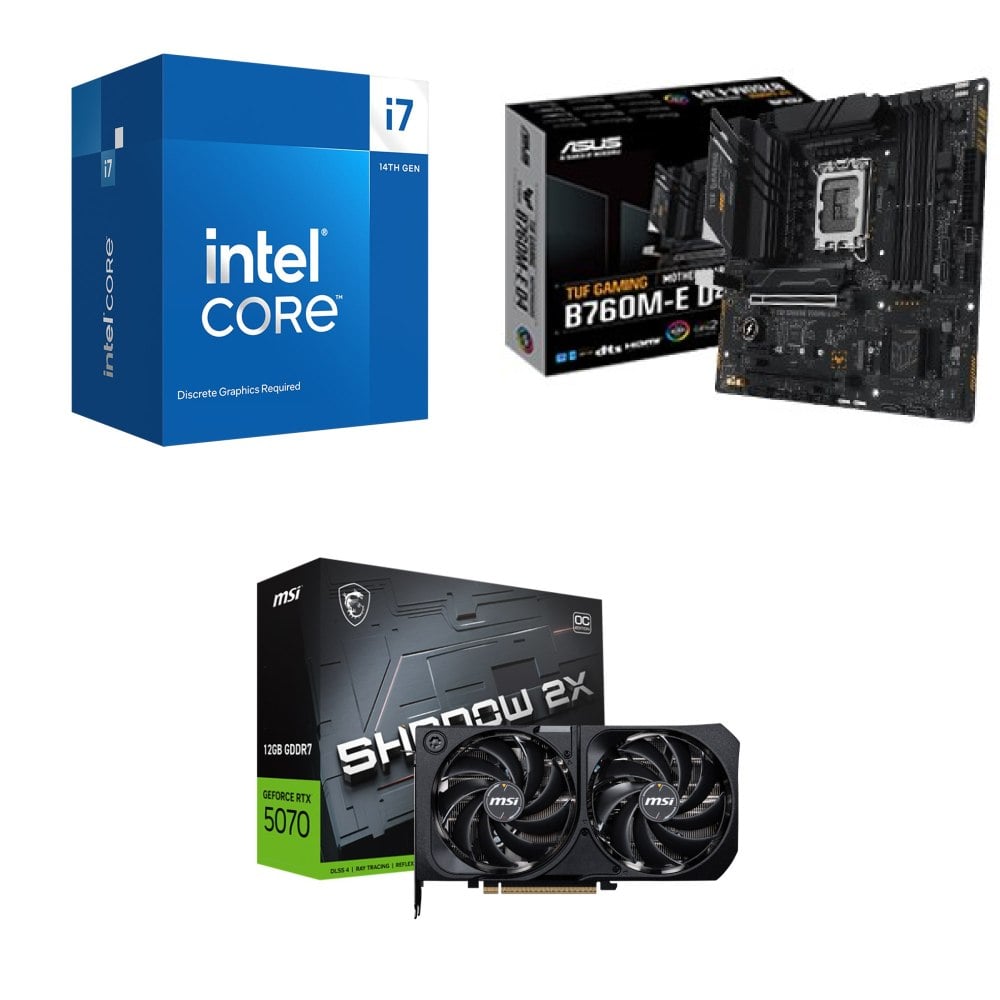 ☆裝機配★ i7-14700F+華碩 TUF GAMING B760M-PLUS WIFI II D5 MATX主機板+微星 RTX 5070 12G SHADOW 2X OC 顯示卡