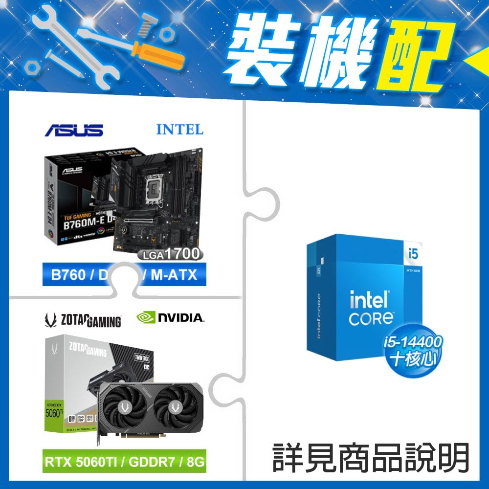 ☆裝機配★ i5-14400+華碩 TUF GAMING B760M-E D4 M-ATX主機板+索泰 RTX 5060 TI 8GB Twin Edge OC 顯示卡