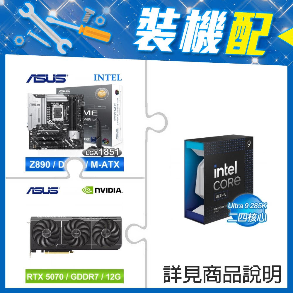 ☆裝機配★ Core U9 285K+華碩 PRIME Z890M-PLUS WIFI-CSM D5 M-ATX主機板+華碩 PRIME-RTX5070-O12G 顯示卡