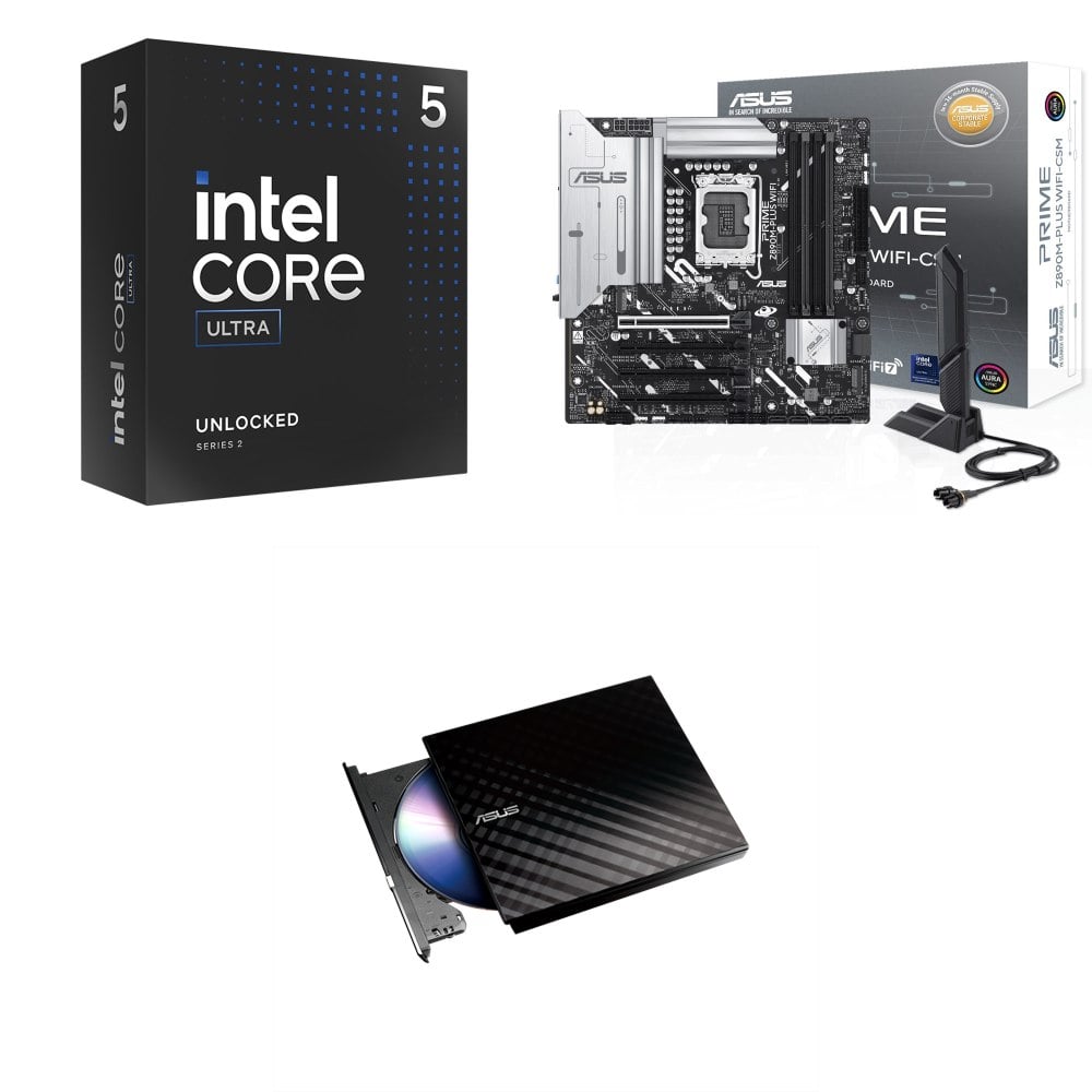 ☆裝機配★ Core U5 245K+華碩 PRIME Z890M-PLUS WIFI-CSM D5 M-ATX主機板+華碩 SDRW-08D2S-U 外接式燒錄機《黑》