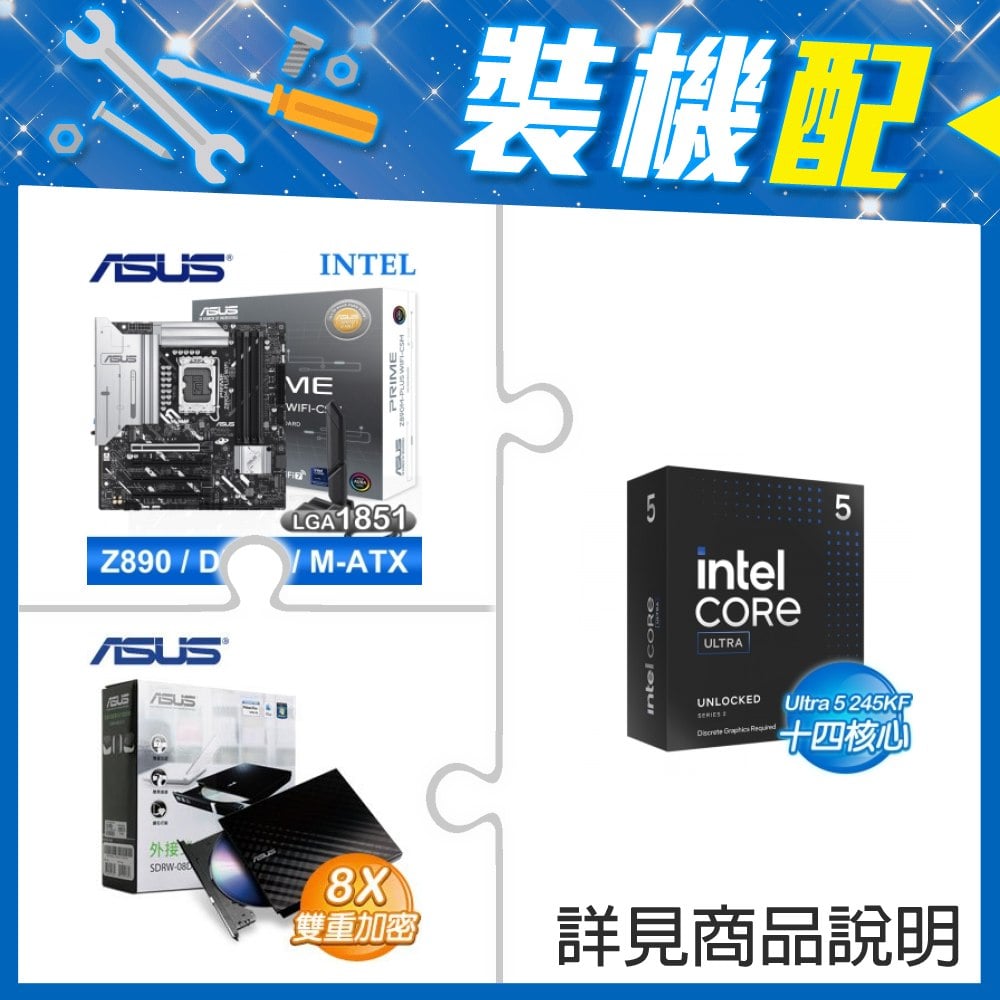☆裝機配★ Core U5 245KF+華碩 PRIME Z890M-PLUS WIFI-CSM D5 M-ATX主機板+華碩 SDRW-08D2S-U 外接式燒錄機《黑》