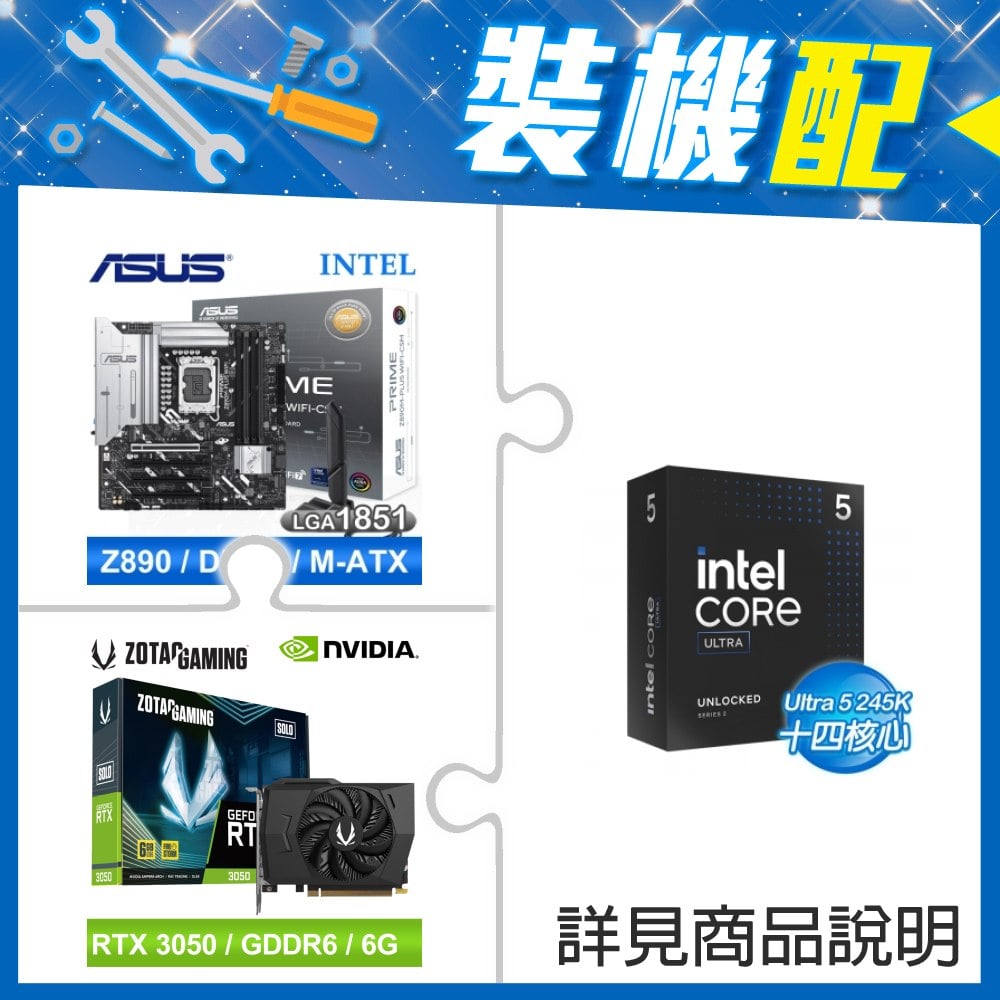 ☆裝機配★ Core U5 245K+華碩 PRIME Z890M-PLUS WIFI-CSM D5 M-ATX主機板+ZOTAC RTX3050 6G GDDR6 Solo 顯示卡