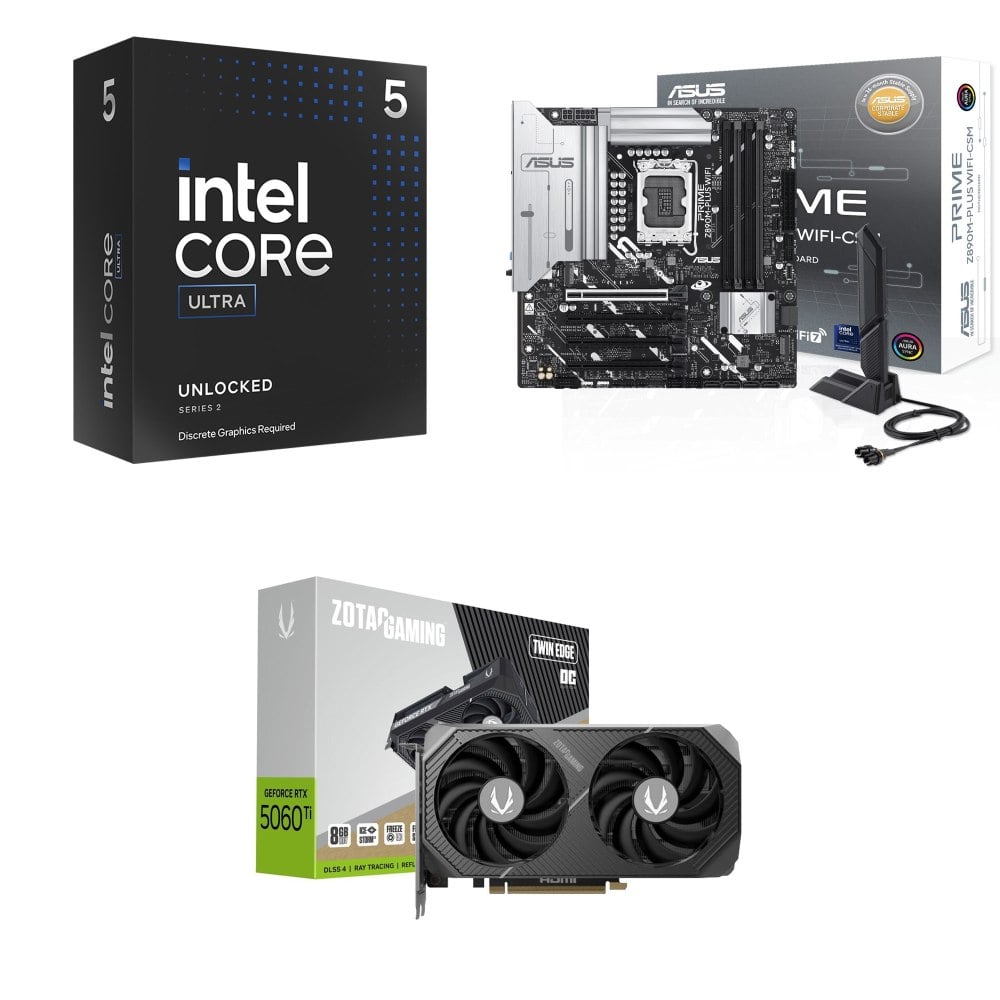 ☆裝機配★ Core U5 245K+華碩 PRIME Z890M-PLUS WIFI-CSM D5 M-ATX主機板+索泰 RTX 5060 TI 8GB Twin Edge OC 顯示卡