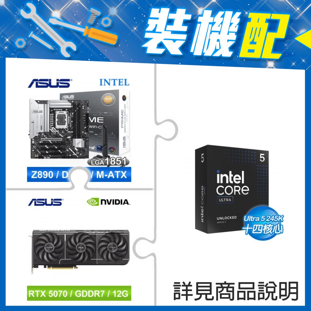 ☆裝機配★ Core U5 245K+華碩 PRIME Z890M-PLUS WIFI-CSM D5 M-ATX主機板+華碩 PRIME-RTX5070-O12G 顯示卡