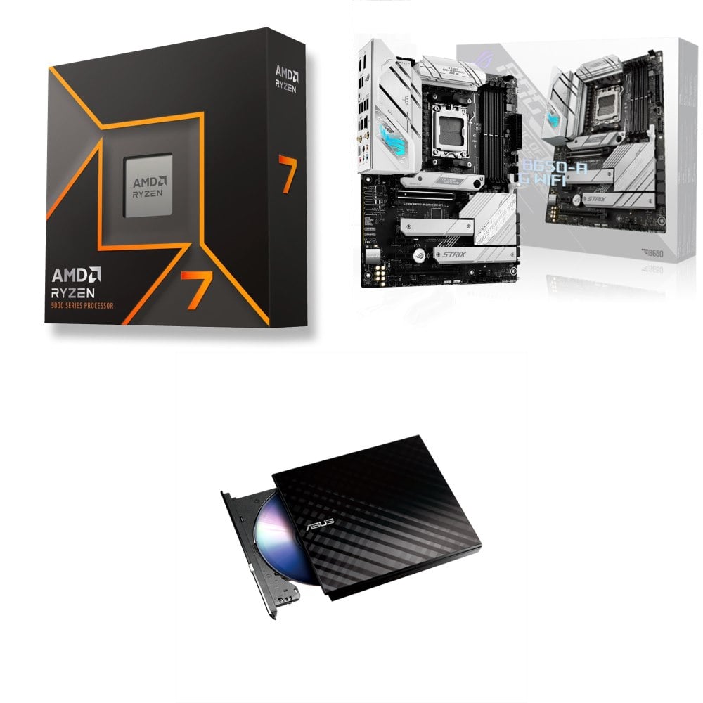 ☆裝機配★ AMD R7 9700X+華碩 ROG STRIX B650-A GAMING WIFI ATX主機板+華碩 SDRW-08D2S-U 外接式燒錄機《黑》