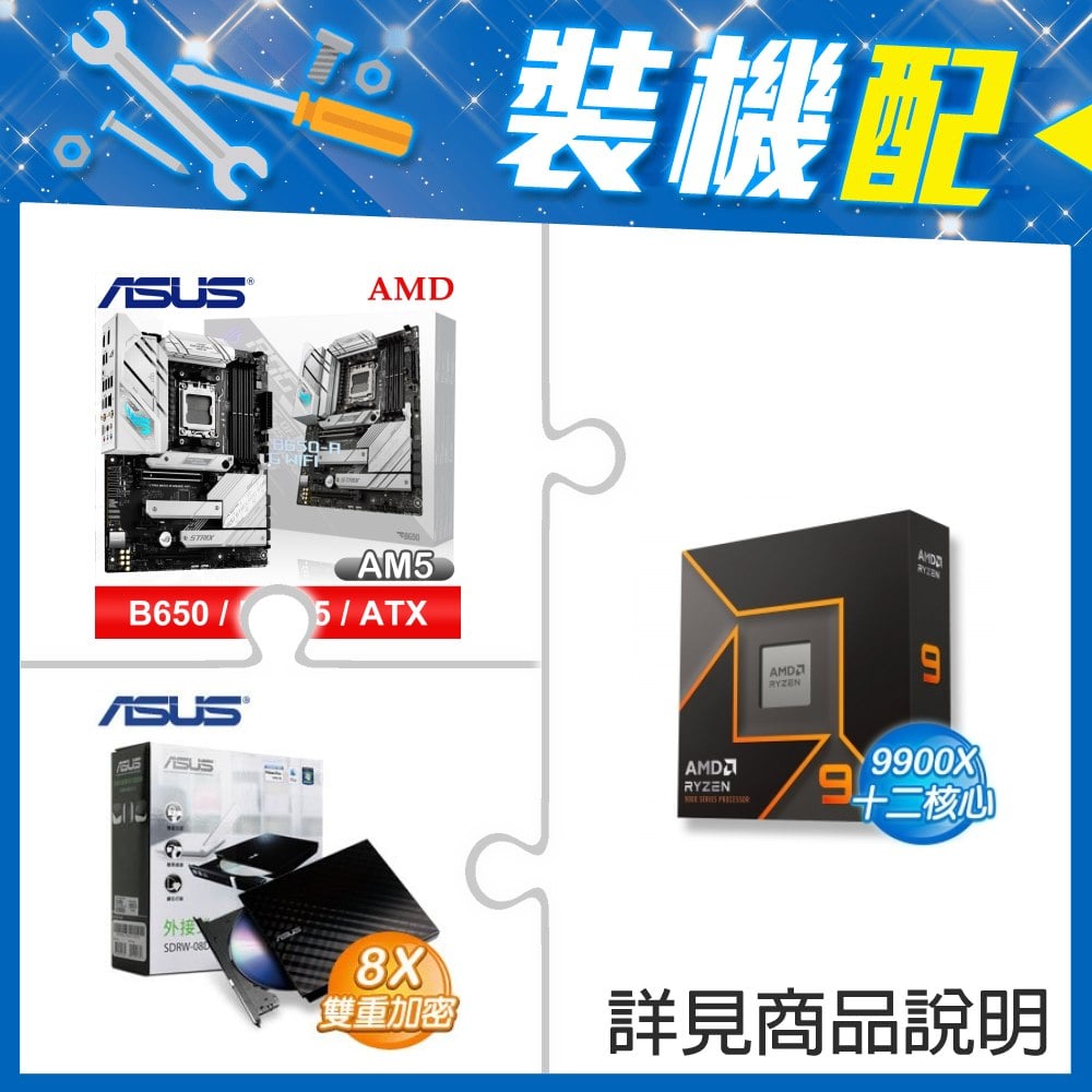 ☆裝機配★ AMD R9 9900X+華碩 ROG STRIX B650-A GAMING WIFI ATX主機板+華碩 SDRW-08D2S-U 外接式燒錄機《黑》
