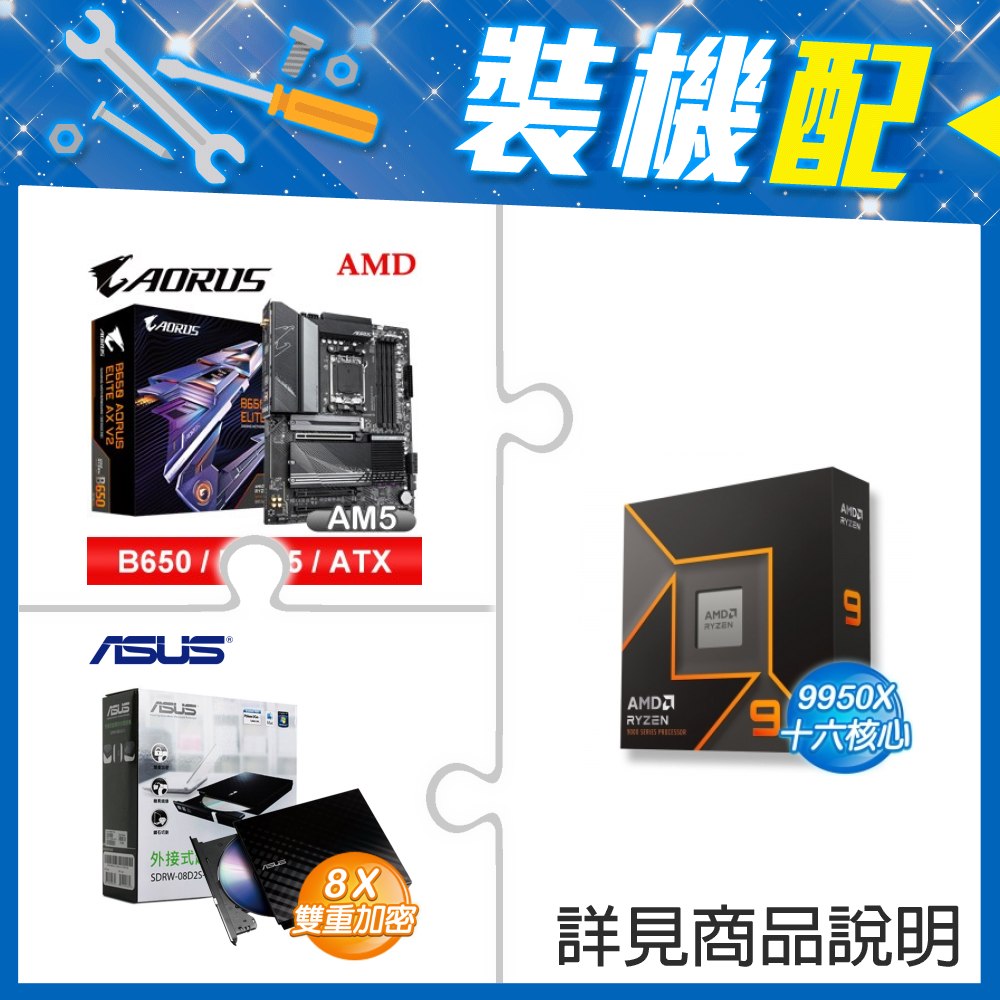 ☆裝機配★ AMD R9 9950X+技嘉 X870 AORUS ELITE WIFI7 ATX主機板+華碩 SDRW-08D2S-U 外接式燒錄機《黑》