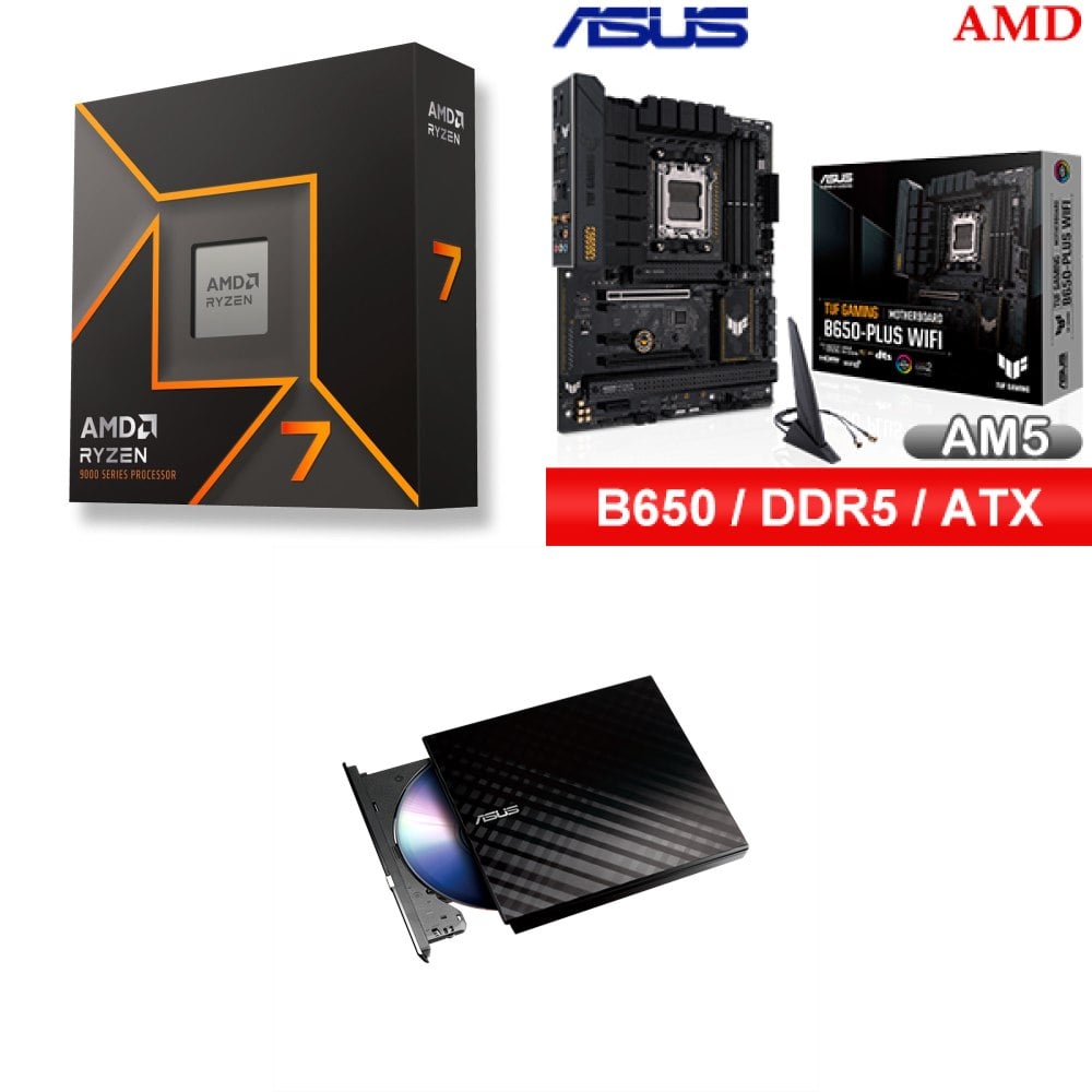 ☆裝機配★ AMD R7 9700X+華碩 TUF GAMING B650-PLUS WIFI ATX主機板+華碩 SDRW-08D2S-U 外接式燒錄機《黑》