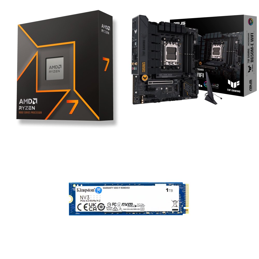☆裝機配★ AMD R7 9700X+華碩 TUF GAMING B650-PLUS WIFI ATX主機板+金士頓 NV3 1TB M.2 PCIe SSD