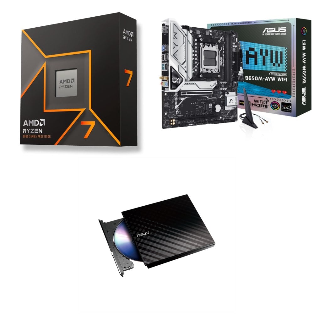 ☆裝機配★ AMD R7 9700X+華碩 B650M-AYW WIFI MATX主機板+華碩 SDRW-08D2S-U 外接式燒錄機《黑》