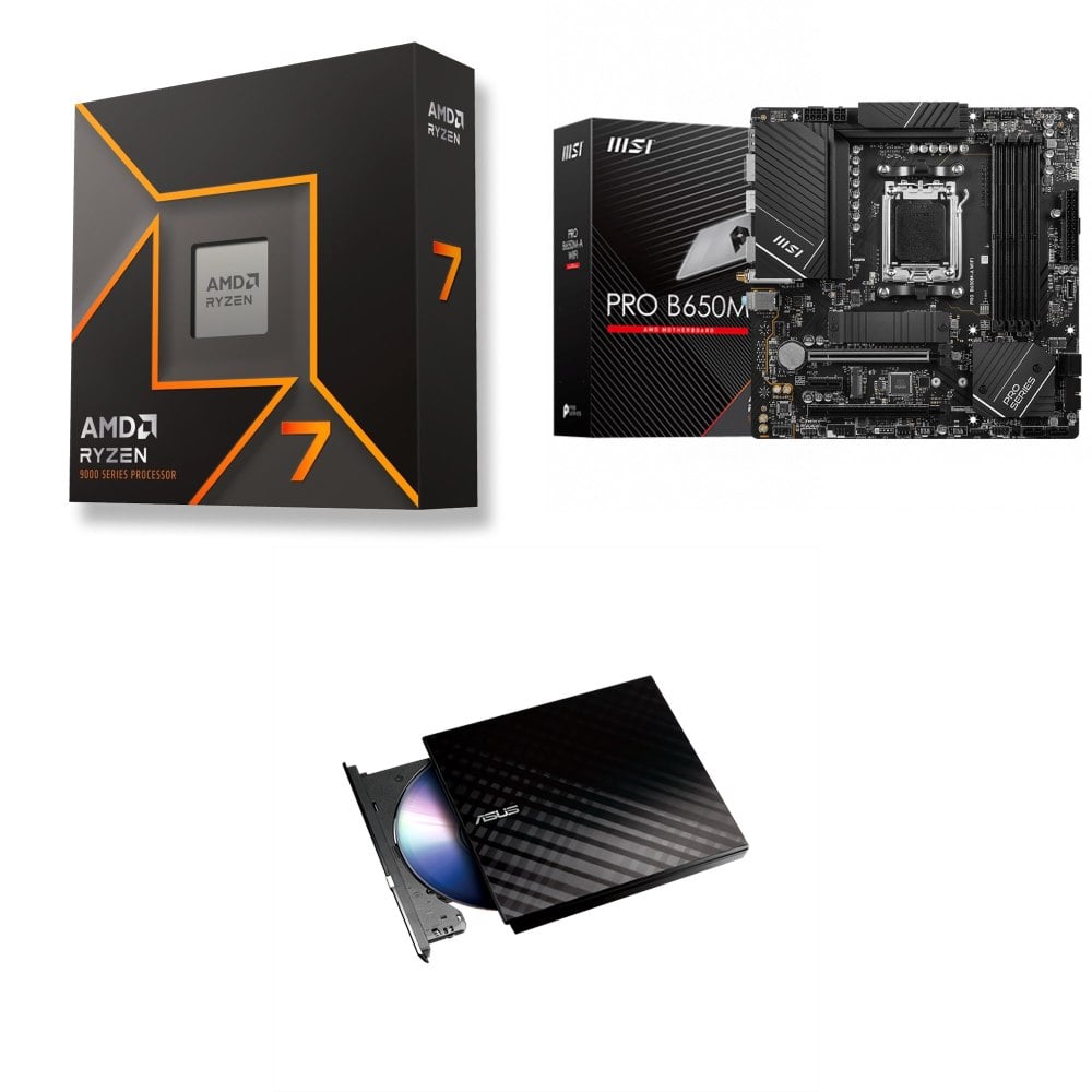 ☆裝機配★ AMD R9 9950X3D+微星 PRO B650M-A WIFI D5 M-ATX主機板+華碩 SDRW-08D2S-U 外接式燒錄機《黑》