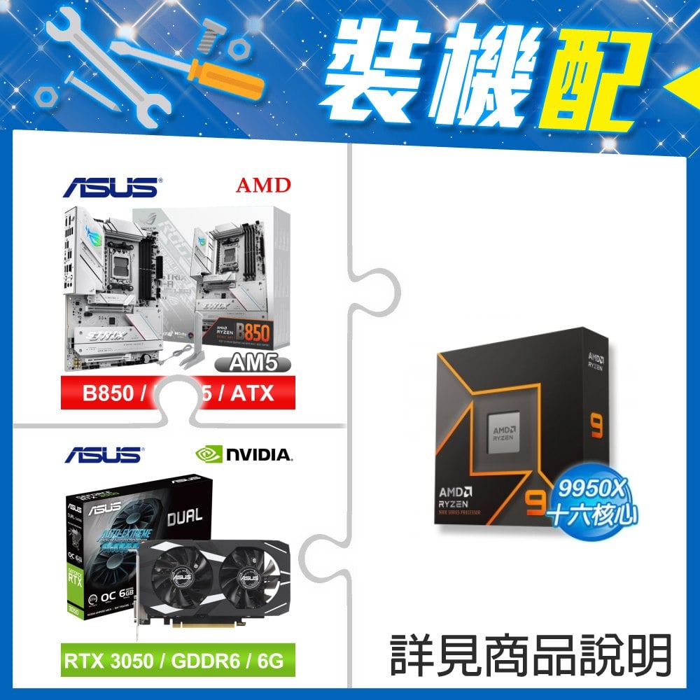 ☆裝機配★ AMD R9 9950X+華碩 ROG STRIX B850-A GAMING WIFI ATX主機板+華碩 DUAL-RTX3050-O6G 顯示卡