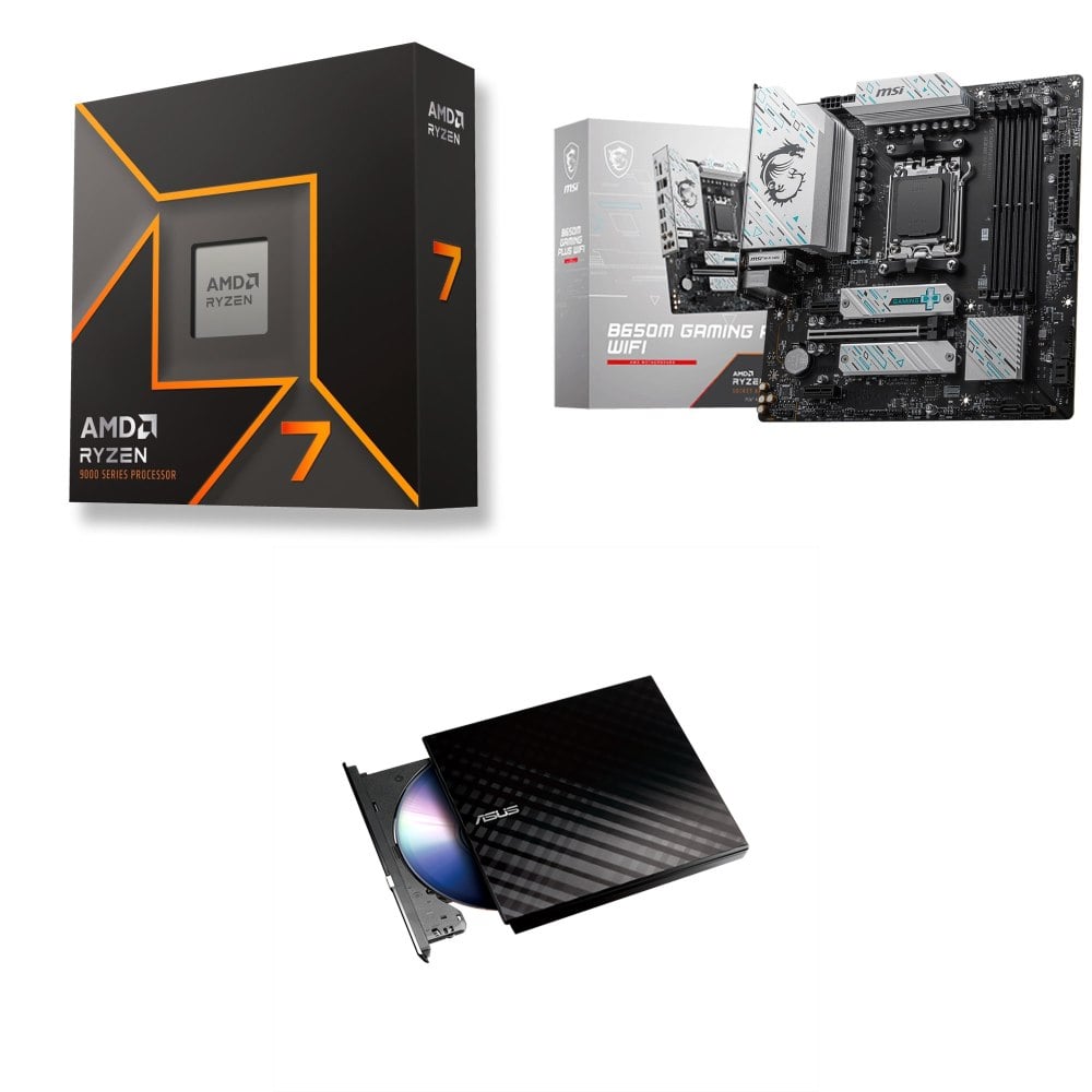 ☆裝機配★ AMD R7 9700X+微星 B650M GAMING PLUS WIFI D5 MATX主機板+華碩 SDRW-08D2S-U 外接式燒錄機《黑》