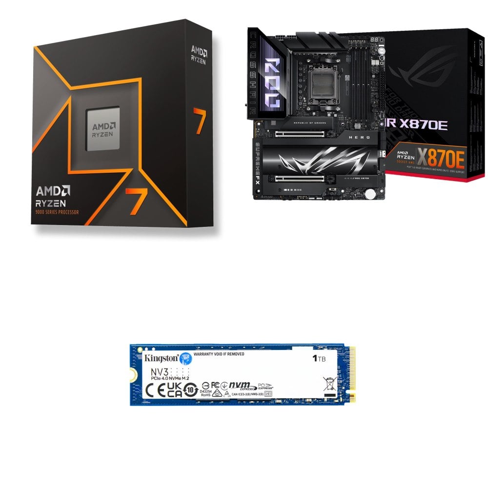 ☆裝機配★ AMD R7 9700X+華碩 ROG CROSSHAIR X870E HERO ATX主機板+金士頓 NV3 1TB M.2 PCIe SSD