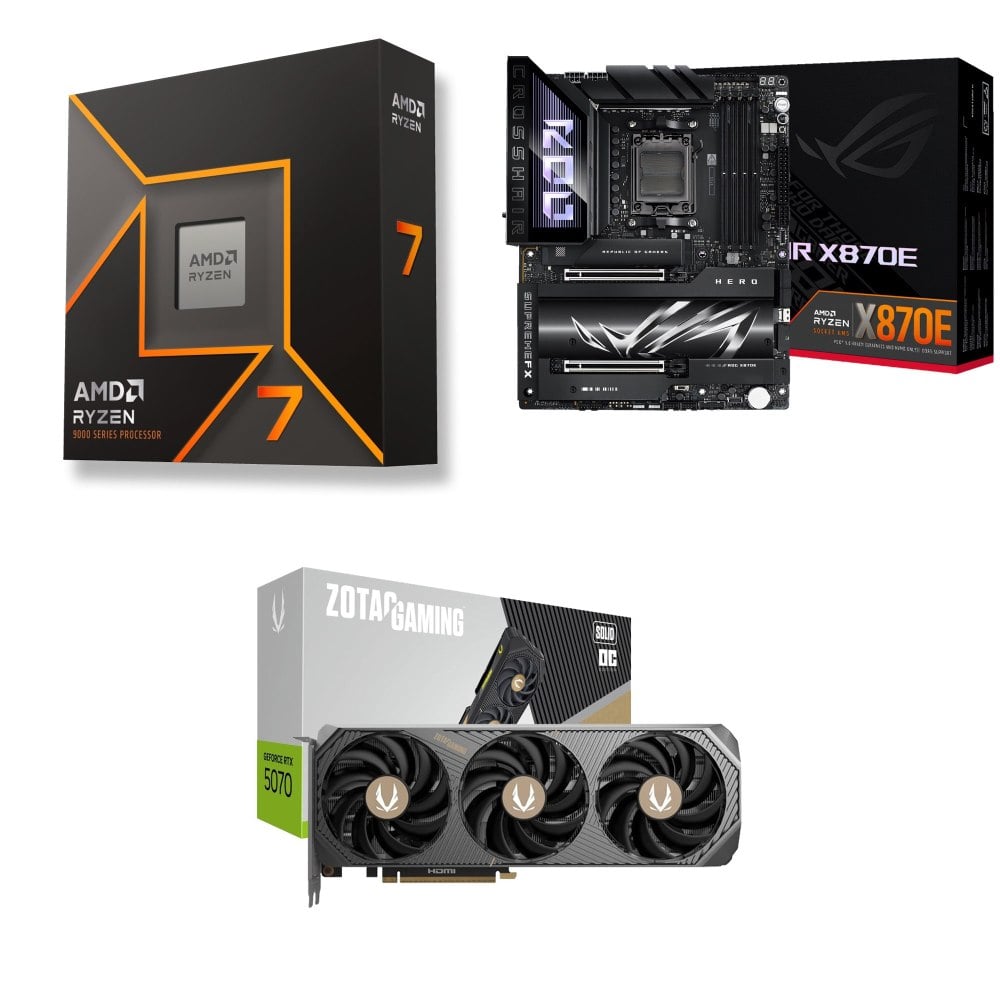 ☆裝機配★ AMD R7 9700X+華碩 ROG CROSSHAIR X870E HERO ATX主機板+索泰 RTX 5070 SOLID OC 12G 顯示卡