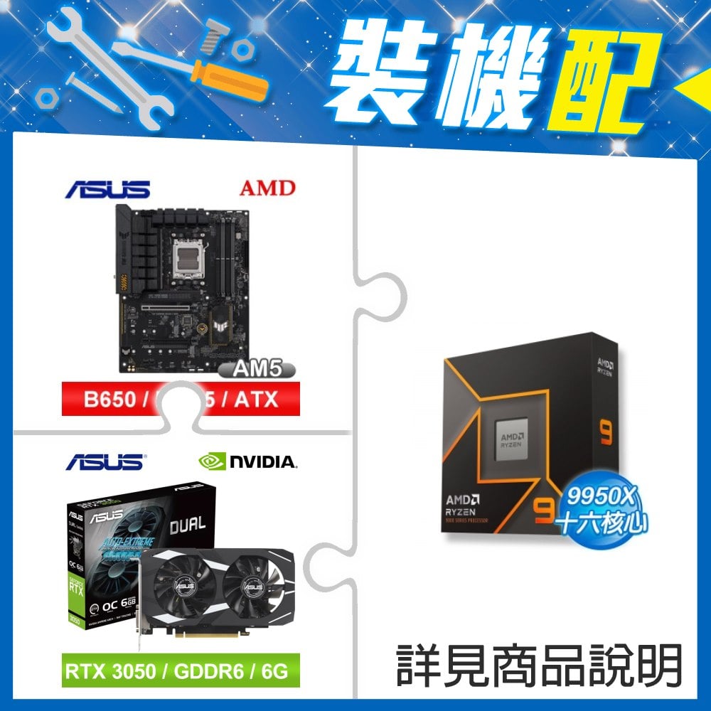 ☆裝機配★ AMD R9 9950X+華碩 TUF GAMING B650-E WIFI ATX主機板+華碩 DUAL-RTX3050-O6G 顯示卡