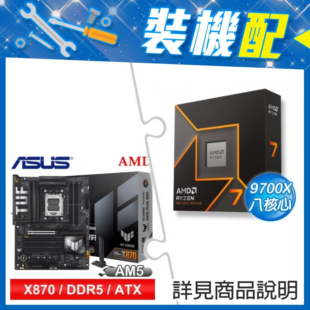 ☆裝機配★ AMD R7 9700X+華碩 TUF GAMING X870-PLUS WIFI ATX主機板