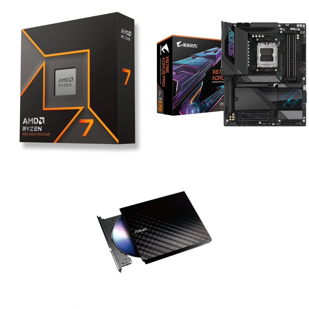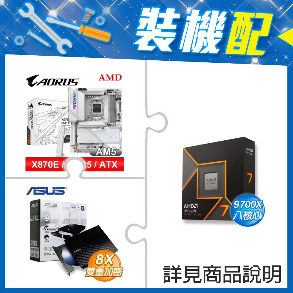 ☆裝機配★ AMD R7 9700X+技嘉 X870E AORUS PRO ATX主機板+華碩 SDRW-08D2S-U 外接式燒錄機《黑》