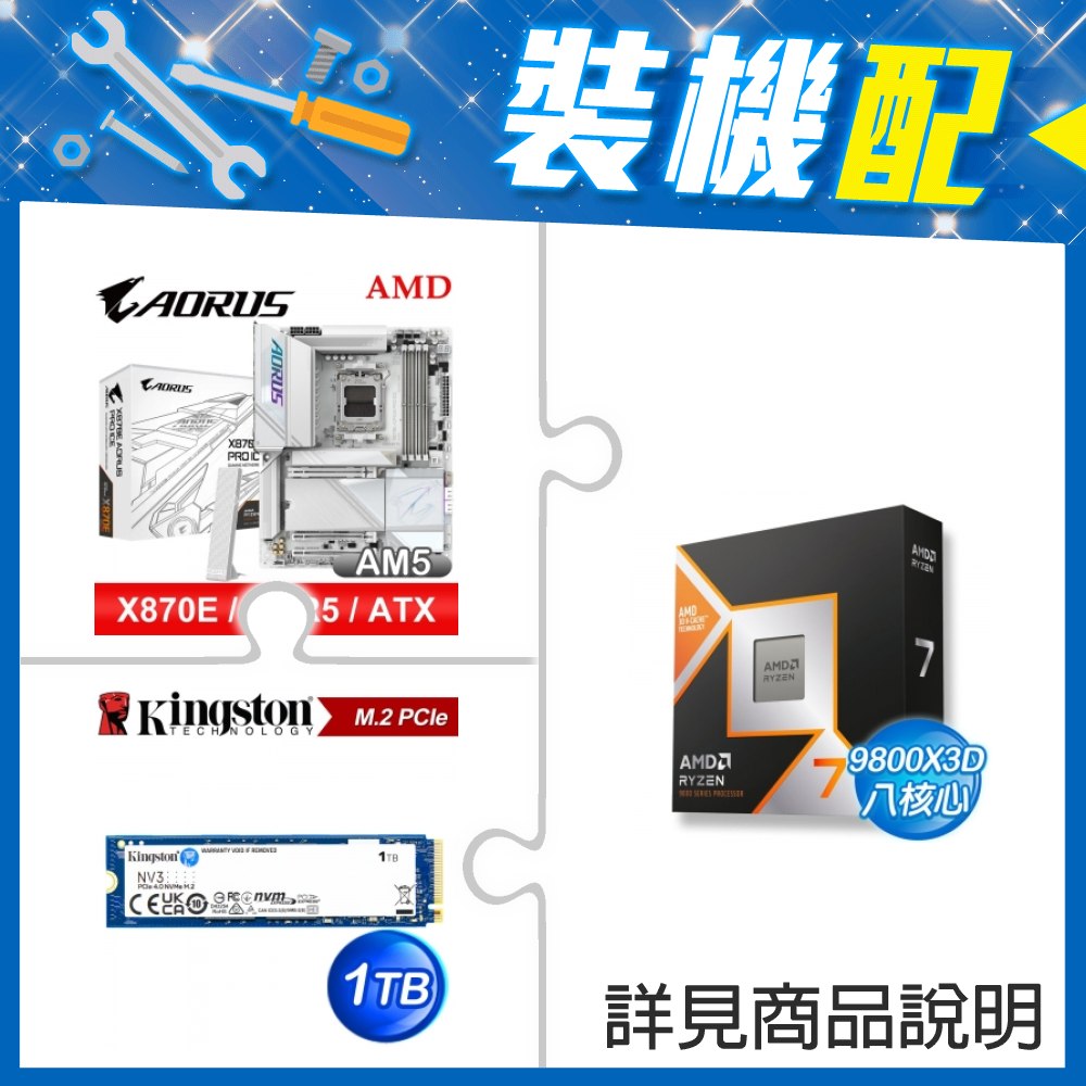 ☆裝機配★ AMD R7 9700X+技嘉 X870E AORUS PRO ICE ATX主機板+金士頓 NV3 1TB M.2 PCIe SSD