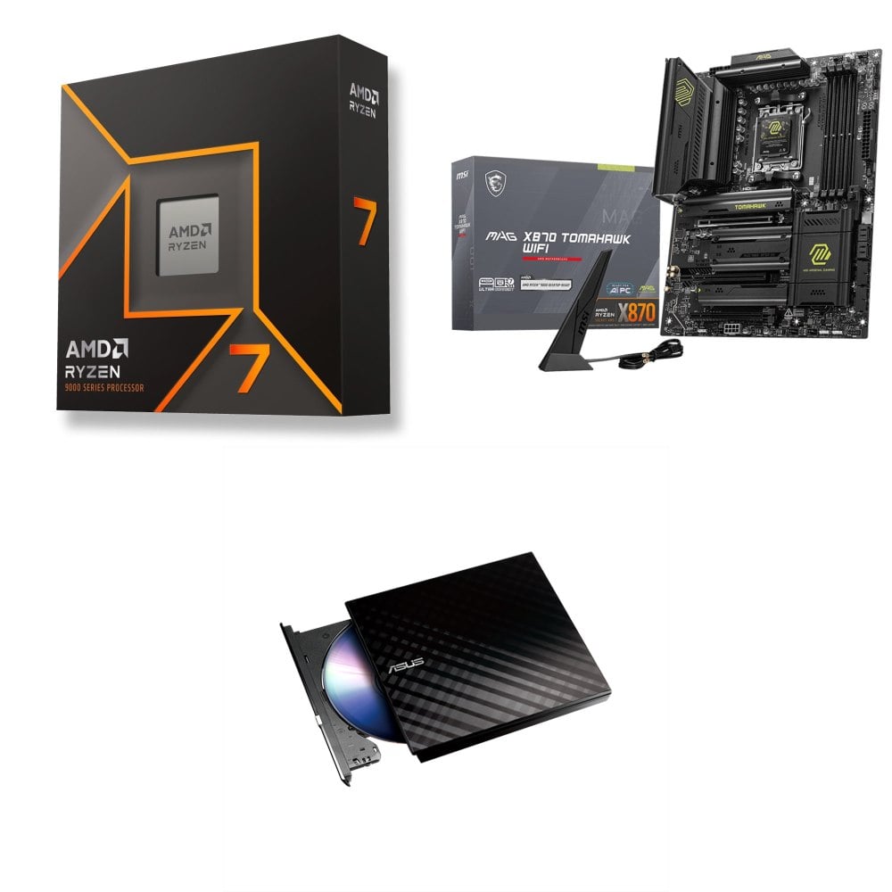 ☆裝機配★ AMD R7 9700X+微星 MAG X870 TOMAHAWK WIFI ATX主機板+華碩 SDRW-08D2S-U 外接式燒錄機《黑》