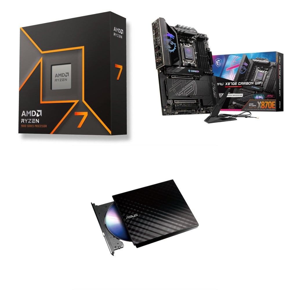 ☆裝機配★ AMD R7 9700X+微星 MPG X870E CARBON WIFI ATX主機板+華碩 SDRW-08D2S-U 外接式燒錄機《黑》