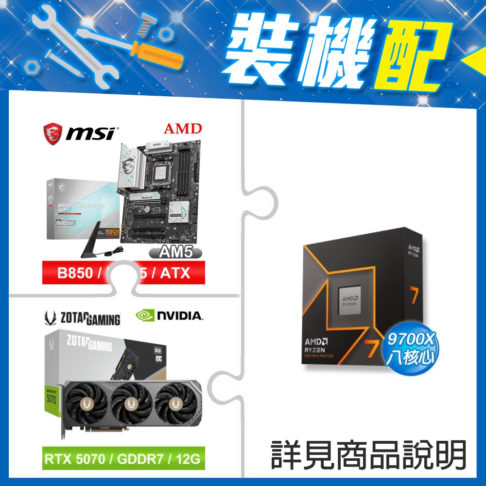 ☆裝機配★ AMD R7 9700X+微星 B850 GAMING PLUS WIFI ATX主機板+索泰 RTX 5070 SOLID OC 12G 顯示卡