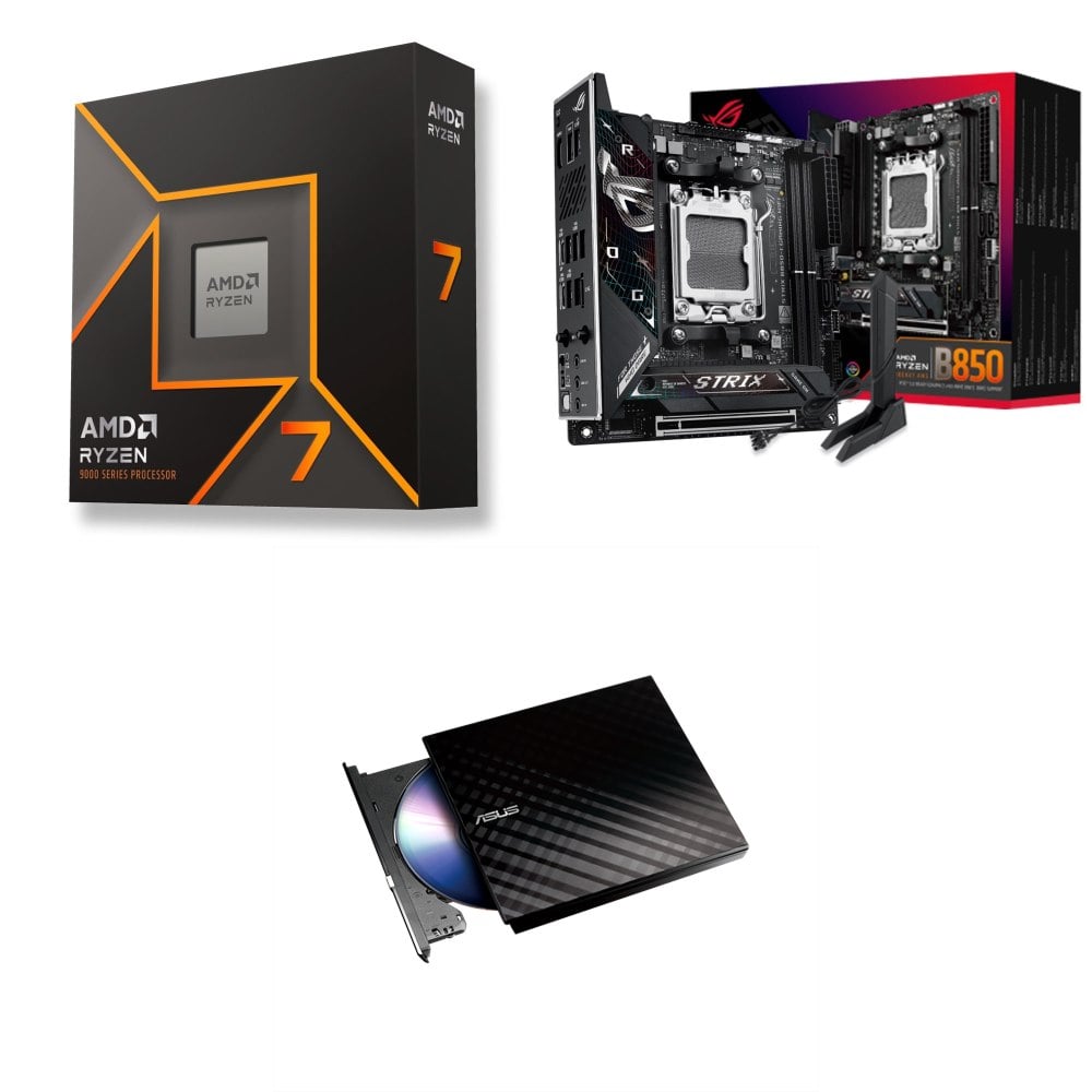 ☆裝機配★ AMD R7 9800X3D+華碩 ROG STRIX B850-I GAMING WIFI ITX主機板+華碩 SDRW-08D2S-U 外接式燒錄機《黑》