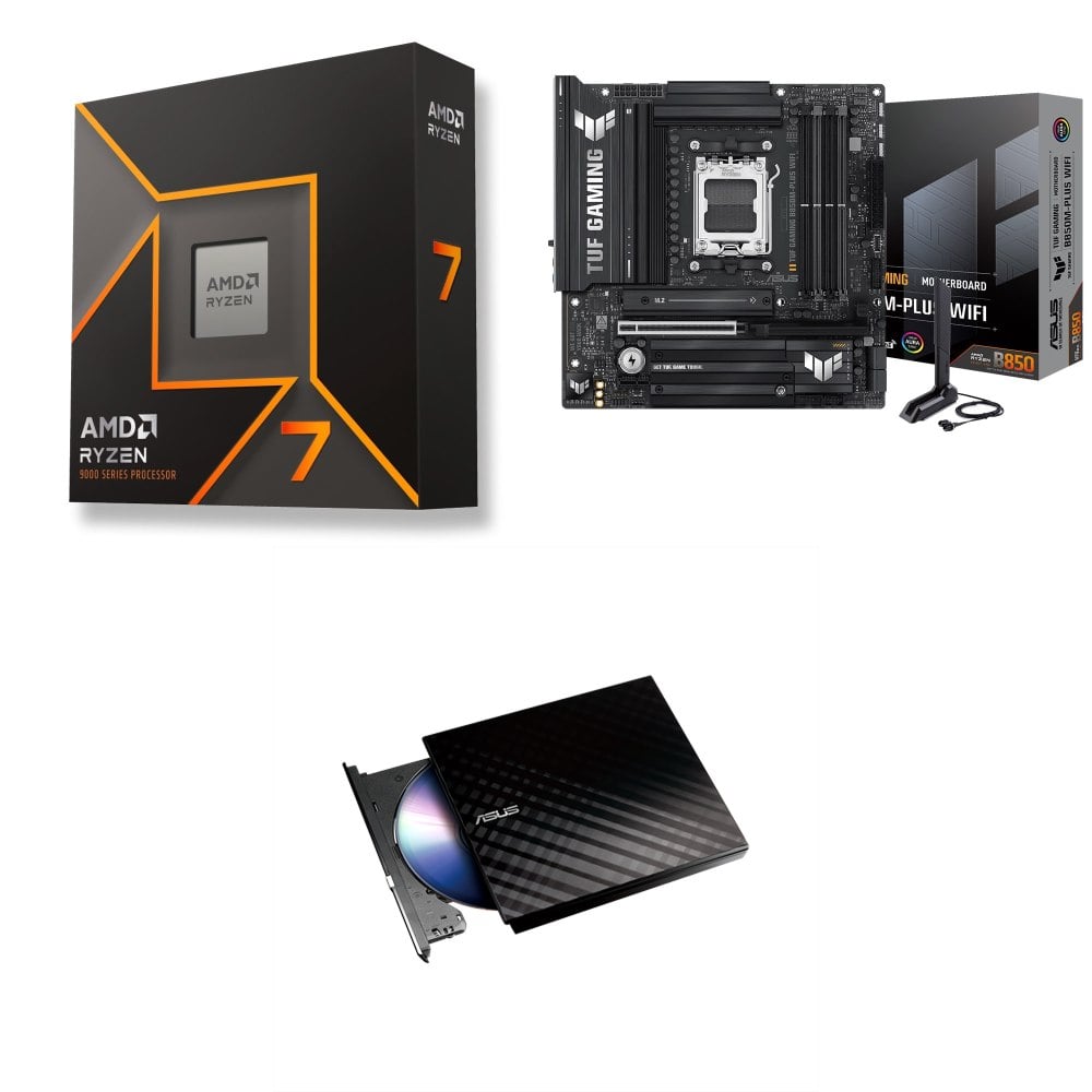 ☆裝機配★ AMD R7 9700X+華碩 TUF GAMING B850M-PLUS WIFI MATX主機板+華碩 SDRW-08D2S-U 外接式燒錄機《黑》