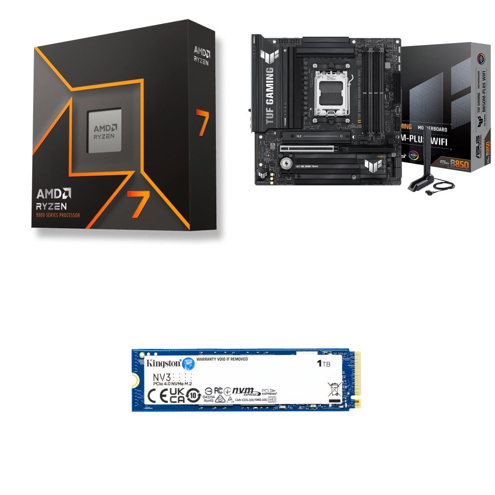 ☆裝機配★ AMD R7 9700X+華碩 TUF GAMING B850M-PLUS WIFI MATX主機板+金士頓 NV3 1TB M.2 PCIe SSD