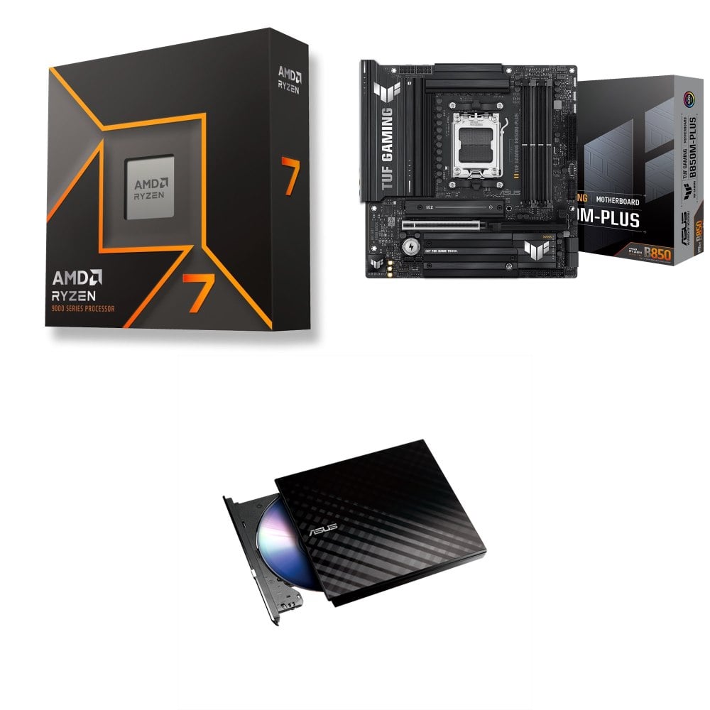 ☆裝機配★ AMD R7 9700X+華碩 TUF GAMING B850M-PLUS WIFI MATX主機板+華碩 SDRW-08D2S-U 外接式燒錄機《黑》