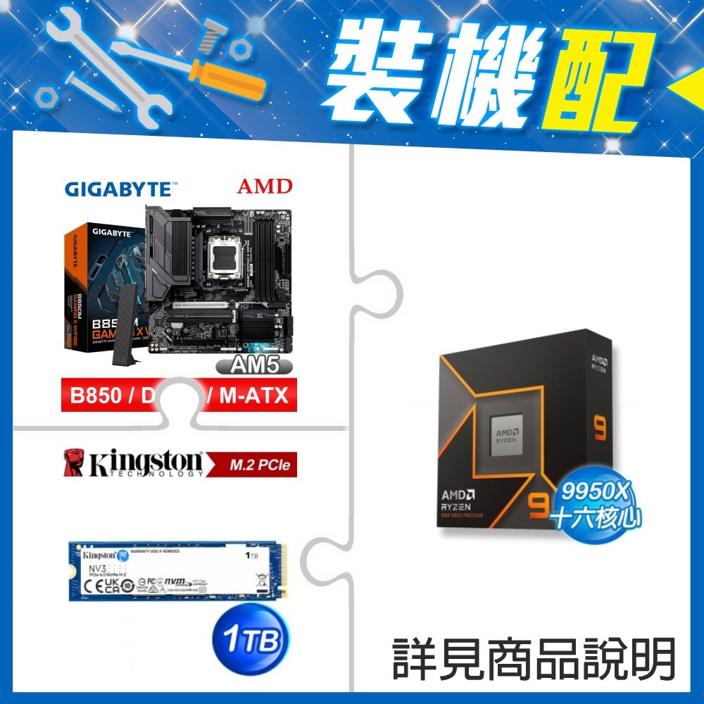 ☆裝機配★ AMD R9 9950X+技嘉 B850M GAMING X WIFI6E MATX主機板+金士頓 NV3 1TB M.2 PCIe SSD
