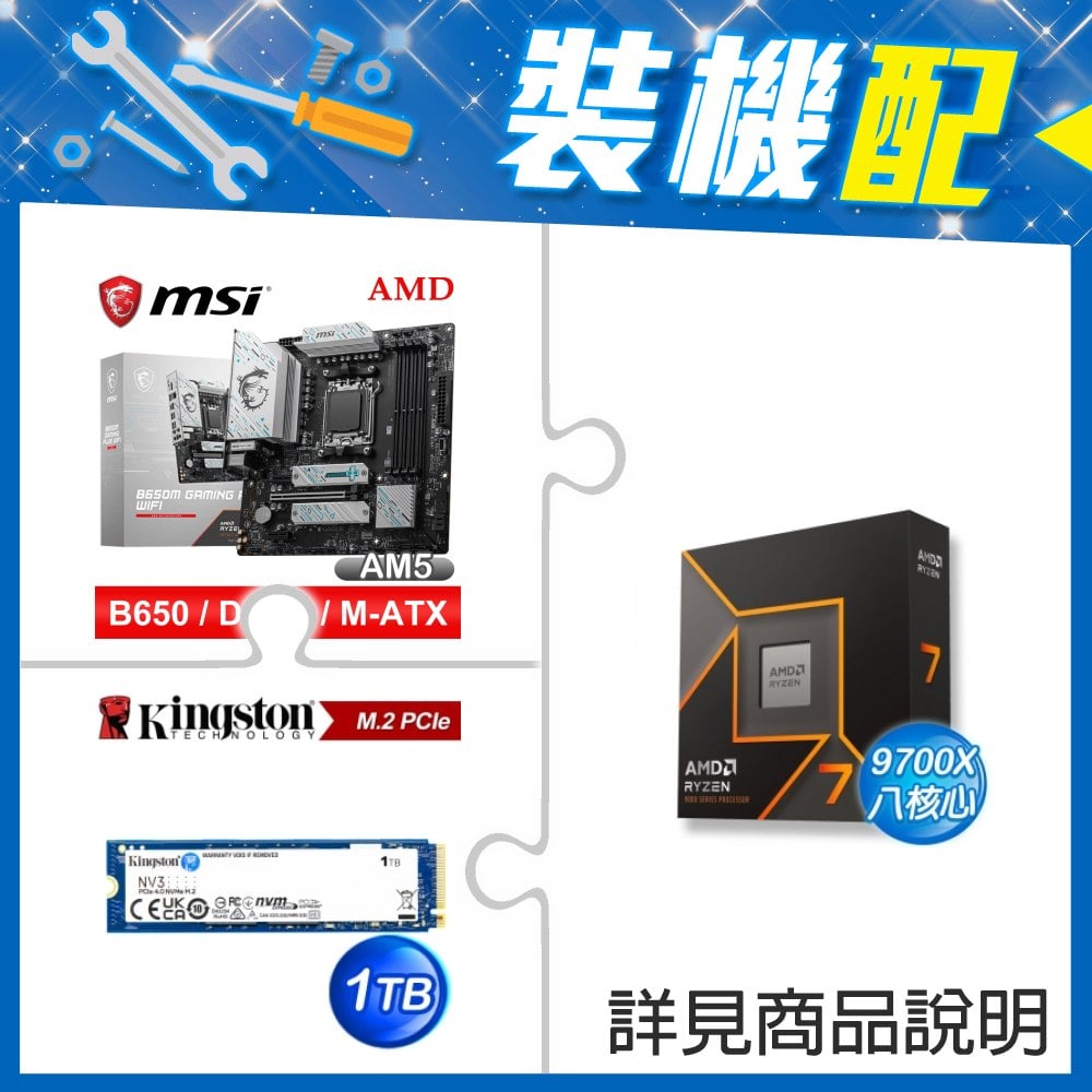☆裝機配★ AMD R7 9700X+微星 B650M GAMING PLUS WIFI D5 MATX主機板+金士頓 NV3 1TB M.2 PCIe SSD