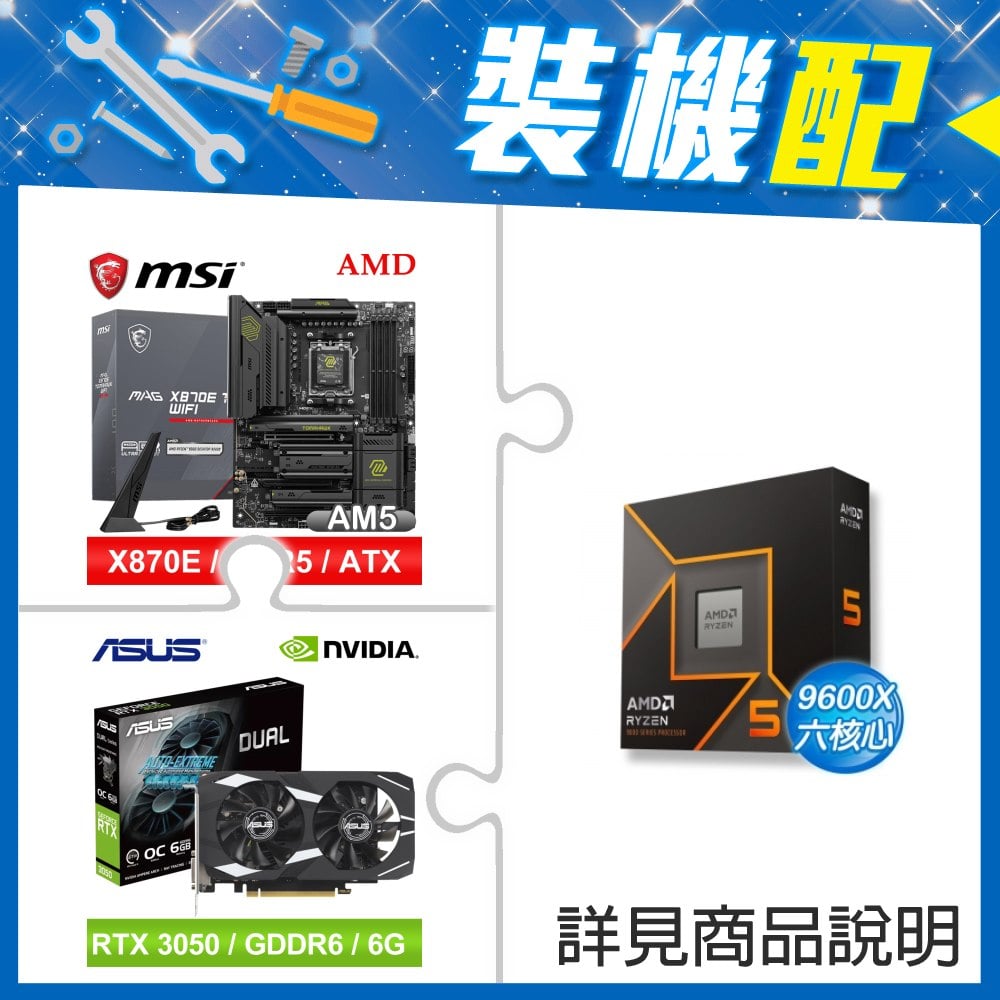☆裝機配★ AMD R5 9600X+微星 MAG X870E TOMAHAWK WIFI ATX主機板+華碩 DUAL-RTX3050-O6G 顯示卡