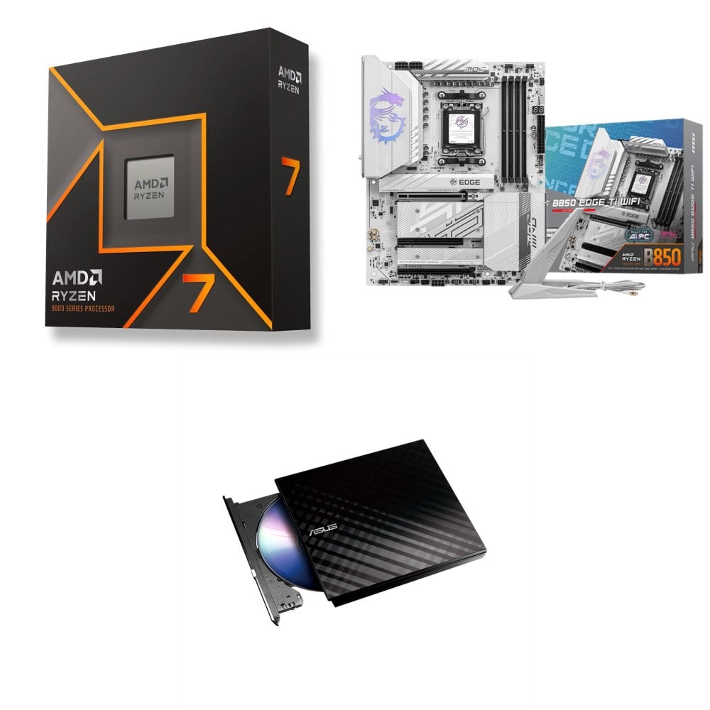 ☆裝機配★ AMD R9 9950X3D+微星 MPG B850 EDGE TI WIFI ATX主機板+華碩 SDRW-08D2S-U 外接式燒錄機《黑》