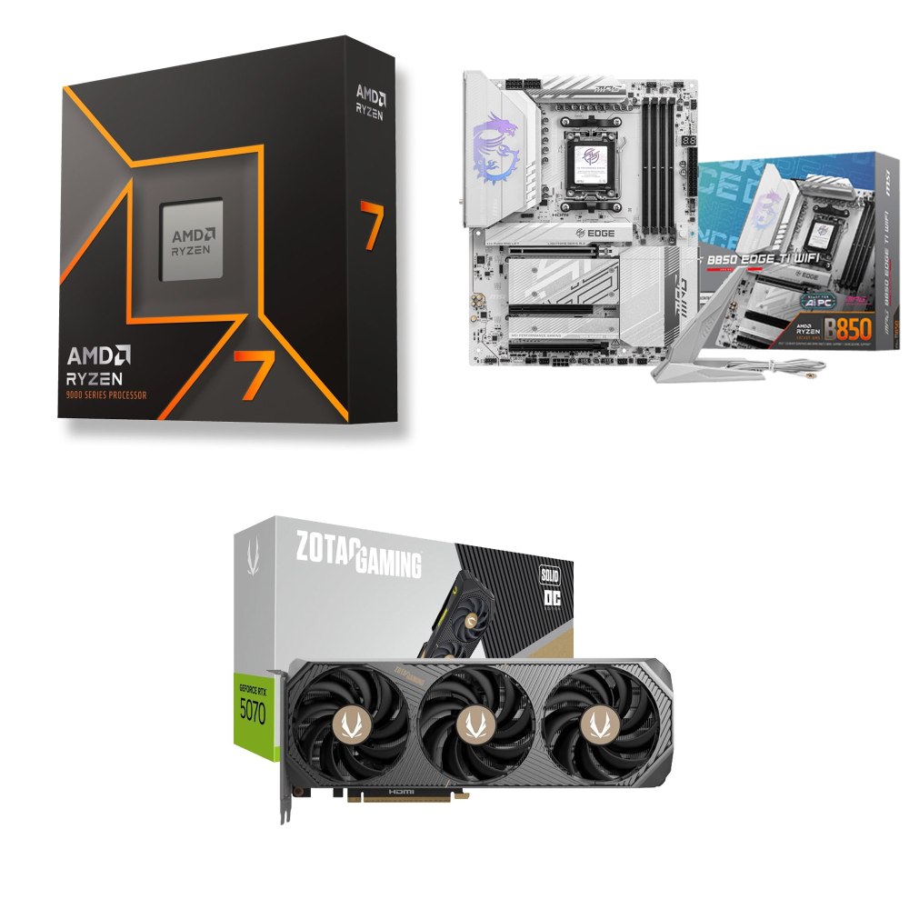 ☆裝機配★ AMD R7 9800X3D+微星 MPG B850 EDGE TI WIFI ATX主機板+索泰 RTX 5070 SOLID OC 12G 顯示卡